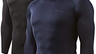 DEVOPS 2 Pack Men\’s Thermal Long Sleeve Compression Shirts (Medium, Black/Navy)
