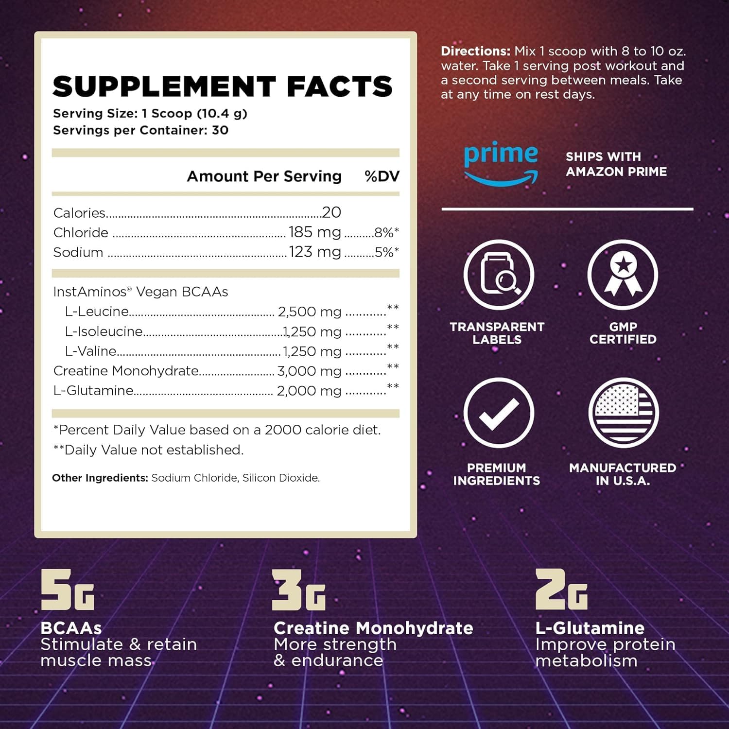 - High-Quality Ingredients: Formulated with essential ingredients like creatine, BCAAs, and L-glutamine for optimal muscle growth and recovery.